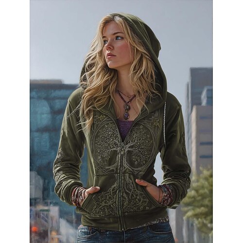 Per donna Felpe con cappuccio Grafico Plaid Moda Western Retrò Manica Lunga Con Cappuccio Top Regolari Streetwear Abbigliamento Quotidiano Cerniera Tasca Stampato Giallo Rosso Viola Verde Primavera