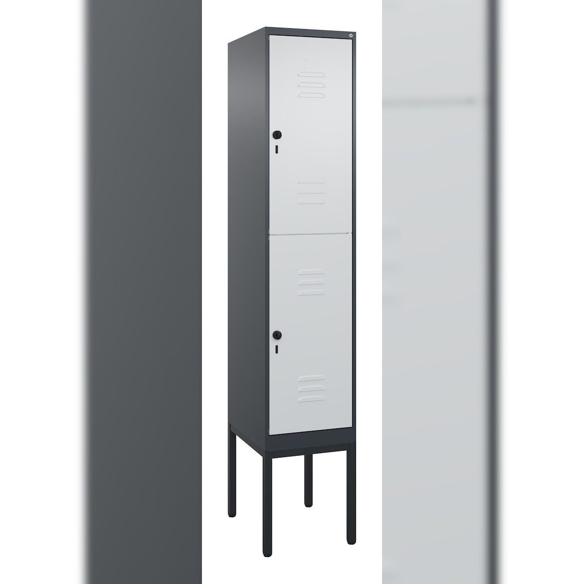 C+P Spind Classic PLUS, Gestell, 2 Abteile, HxBxT 212x40x50cm, Sicherheitsdrehriegel, Anthrazit/Hellgrau von PROREGAL