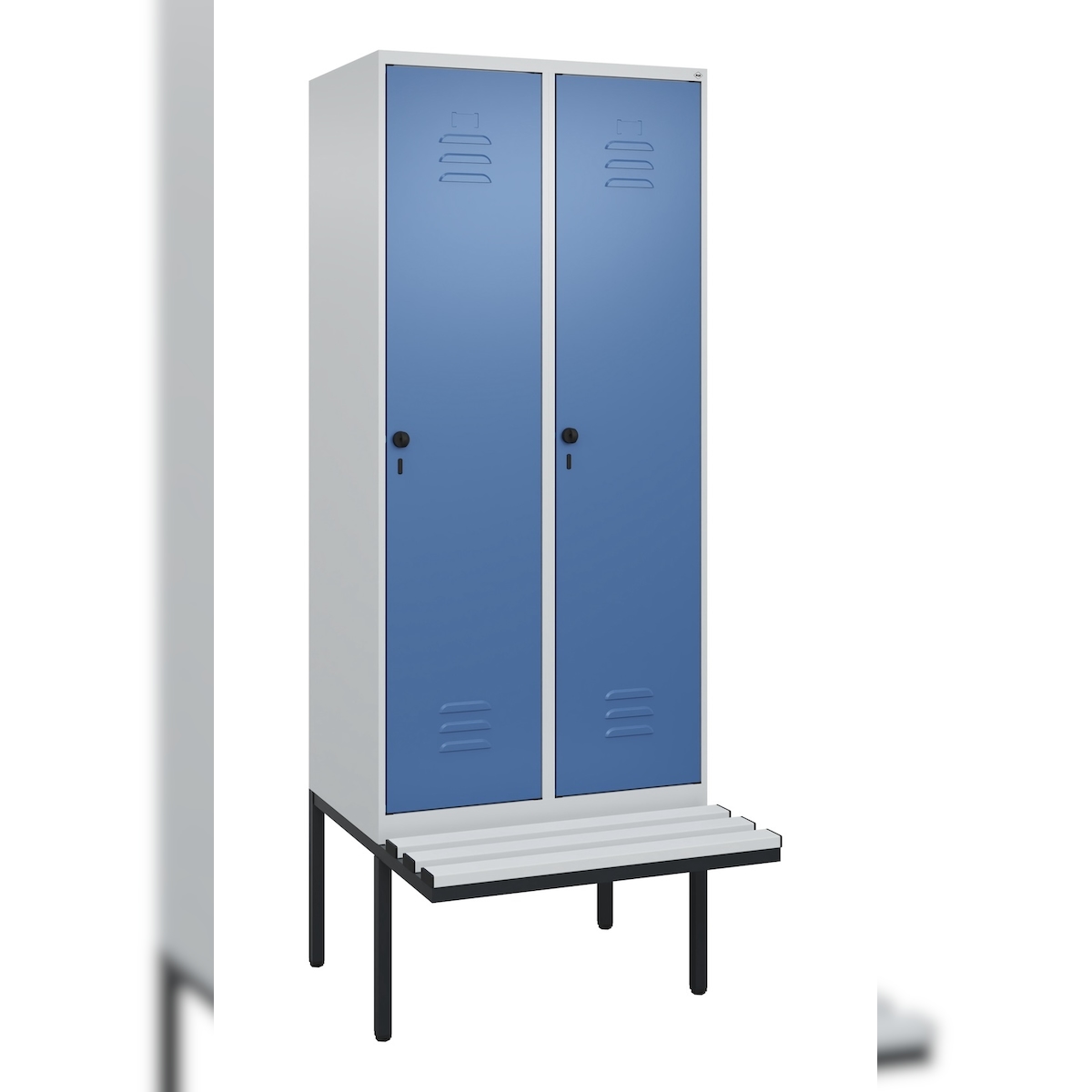 C+P Spind Classic PLUS, Kunststoff schwebende Sitzbank, 2 Abteile, HxBxT 212x80x82cm, Sicherheitsdrehriegel, Hellgrau/Fernblau von PROREGAL