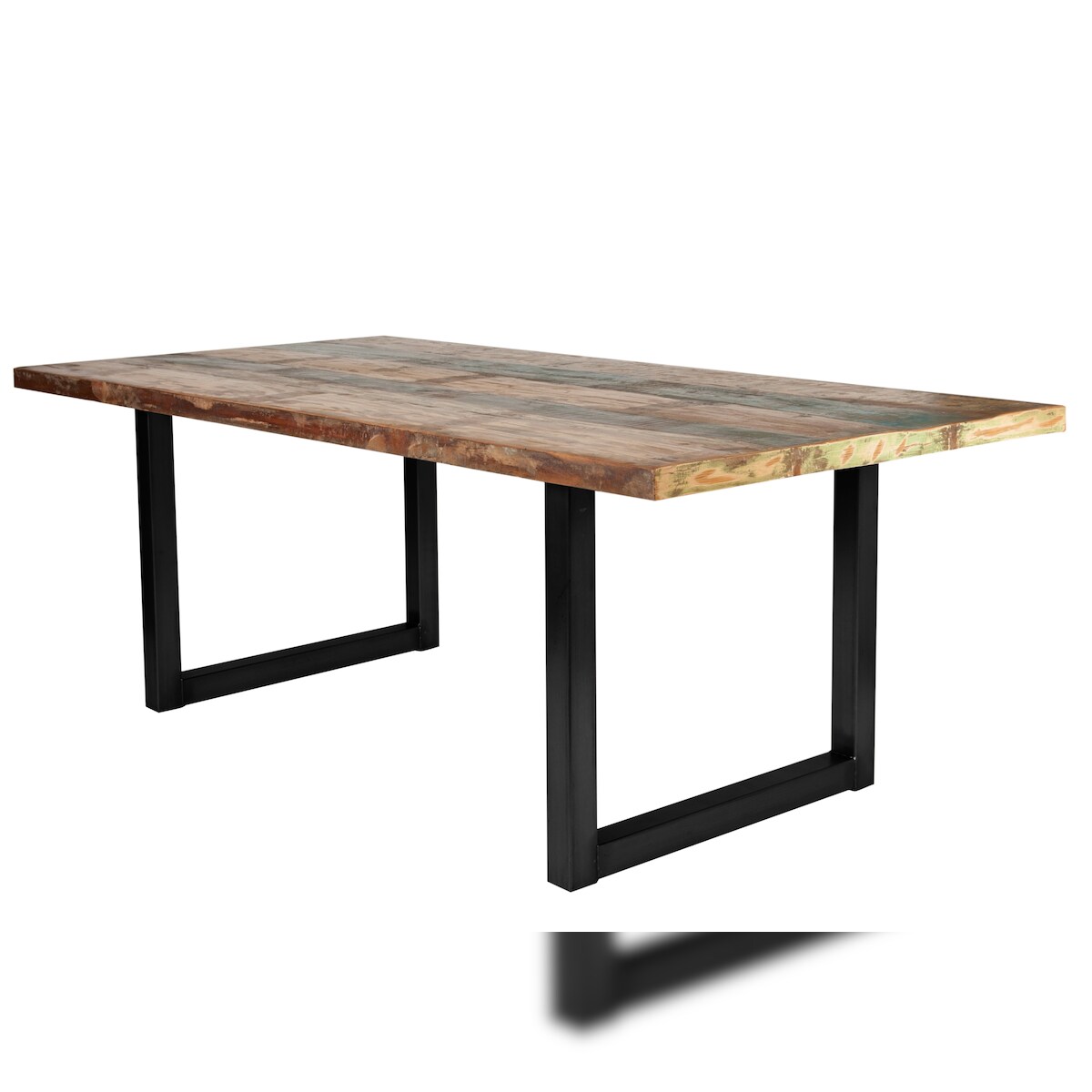 SIT Möbel Esstisch 220 cm | Platte 40 mm Altholz bunt | Kufen-Gestell Stahl antikschwarz | B 220 x T 100 x H 76,5 cm | 15024-11 | Serie TABLES & CO