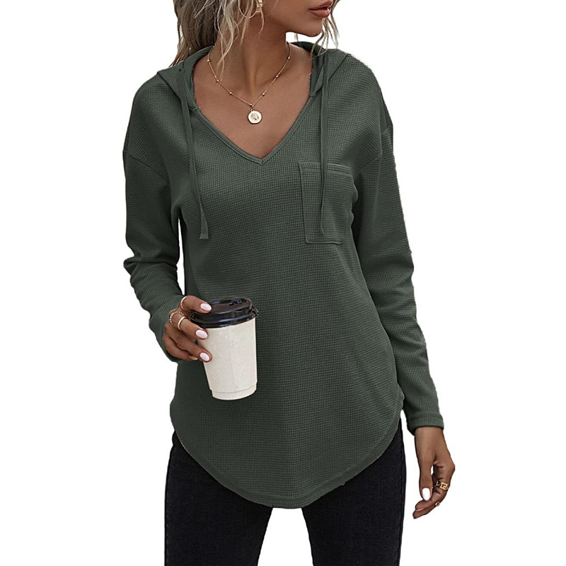 Women's Blouse Solid Color Stylish Casual Long Sleeve V Neck Regular Tops Daily Pocket Army Green Red Blue Green Spring Fall Winter
