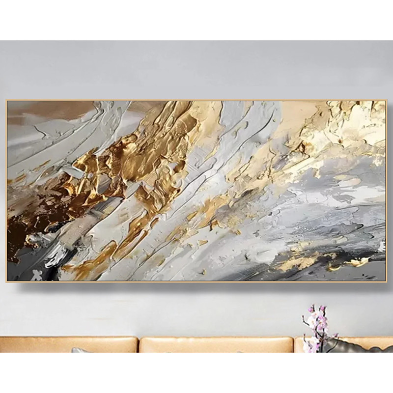 Gold Abstract Paitning on Canvas Textured Wall Art Gold Foil Painting Boho Wall Decor Bright painting Large Modern Art Living Room Art