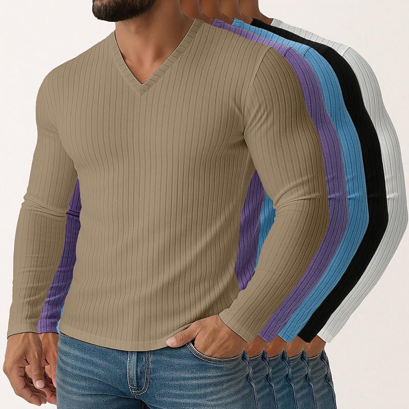 Men's T Shirt Ribbed Knit tee Tee Top Long Sleeve Shirt Long Sleeve V Neck Spring Fall Winter Plain Vertical Stripes Pit Strip Fashion Designer Basic 5-Piece Multi-pack Vacation Street Casual 8# 9