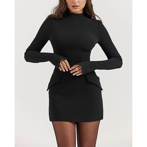 Per donna Mini Abito Tubino Moda Moderno Quotidiano Ufficio Vacanza Vestibilità regolare Semplice Manica Lunga Collo Alto Nero Blu marino Primavera Autunno Inverno