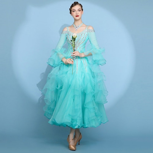 Balli da Sala Vestito Pieghe Giunzione Cristalli / Strass Per donna Performance Allenamento Manica Lunga Alto Spandex Rete
