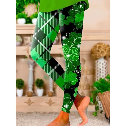 Per donna Leggings Attivo Vacanza Moda Lunghezza intera Vita AltaPantsGiorno di San Patrizio Grafico Geometrico Trifoglio Stampato Taglio alto Comodità All'aperto Confortevole Elasticizzato Vacanza