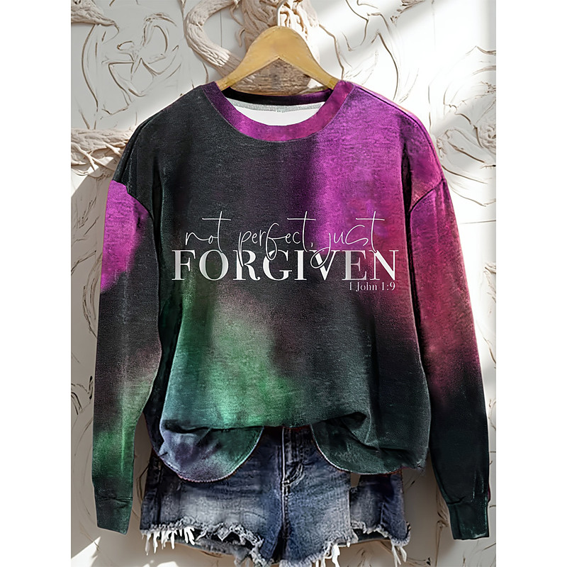 Women's Sweatshirts Graphic Letter Casual Long Sleeve Crew Neck Regular Tops Street Dailywear Casual Print Blue Red Purple Green Fall Winter