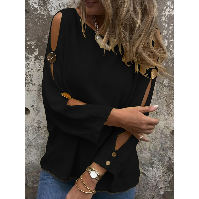 Women's Blouse Solid Color Stylish Casual Long Sleeve Crew Neck Regular Tops Daily Buttons Black Yellow Purple Khaki Summer Spring Fall