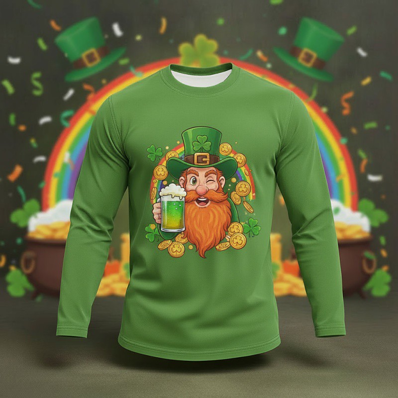 St. Patrick Men's Graphic Oktoberfest Beer Leprechaun T Shirt T shirt Tee Tee Top Long Sleeve Shirt Long Sleeve T shirt 3D Print Crew Neck Shirt Sports Fashion Designer Party St.Patrick's Day Holiday