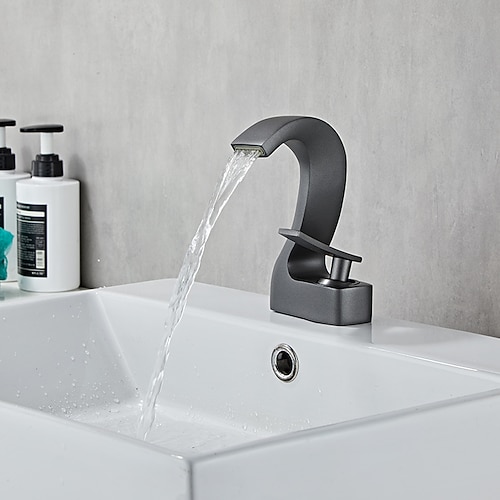 Wasserfall-Waschbecken-Mischbatterie Deck montiert, Mono-Waschbecken Einhand-Waschtischarmaturen Waschraum mit Warm- und Kaltwasserschlauch, Monobloc-Gefäß Wasserhahn aus Messing lackiert, galvanisch beschichtet