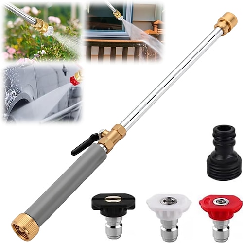 Ugello per tubo da giardino, idropulitrice ad alta pressione con 3 ugelli ad alta pressione, lancia a getto potente, punte intercambiabili, strumento per autolavaggio, pulizia di patio, vialetto e terrazza per esterni