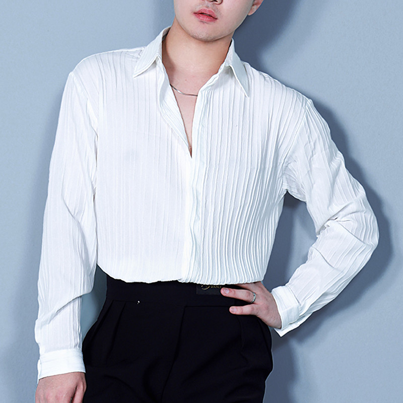 Latin Dance Top Pure Color Men's Performance Daily Wear Long Sleeve Spandex