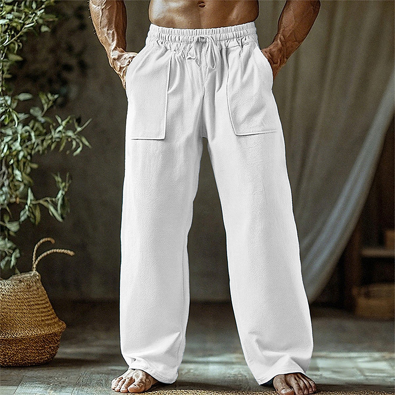 Men's Linen Pants Trousers Summer Pants Baggy Pants Straight Leg Plain Comfort Breathable Full Length Casual Daily Holiday Vacation Fashion Black White