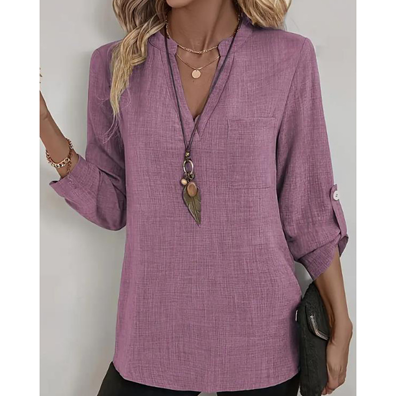 Women's Blouse Plain Casual Long Sleeve V Neck Regular Tops Daily Holiday Pocket Buttons Blue Yellow Purple Green Khaki Summer Spring
