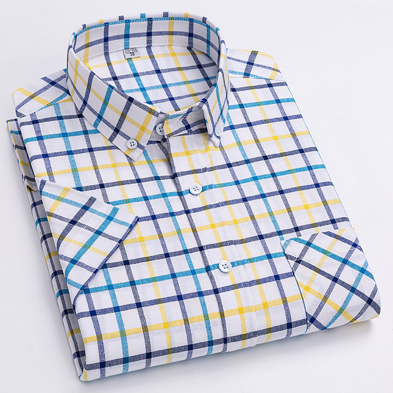 Herren Hemd Oberhemd Oxford Hemd Plaid Hochzeit Büro Karriere Hellrosa Hellblau Schwarz Weiß Kurzarm Umlegekragen Frühling Herbst Bekleidung Bedruckt