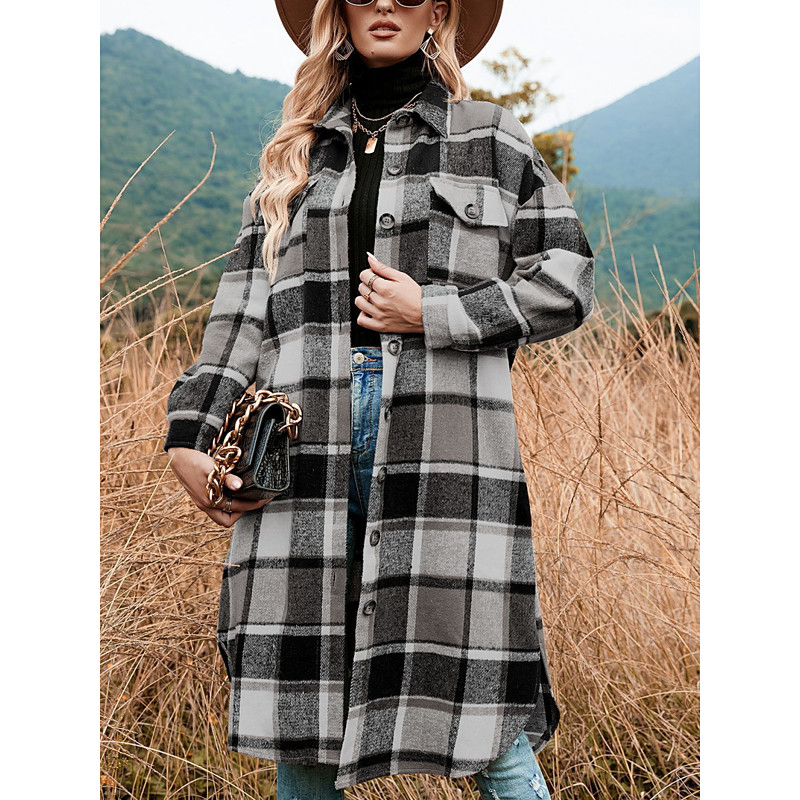 Women's Casual Jacket Comfortable Breathable Pocket Buttons Print Casual Plaid Vacation Street Casual Daily Wear Single Breasted Regular Turndown Regular Fit Long Sleeve Outerwear Black Yellow Blue