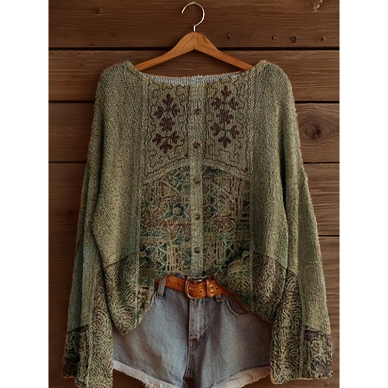 Women's Sweater Casual Soft Floral Graphic Abstract Ribbed Boat Neck Knitted Print Long Sleeve Regular Tops Knit Outdoor Daily Weekend White Pink Spring Fall