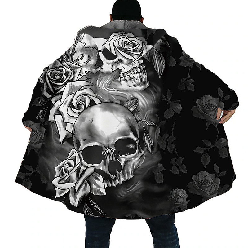 Men's Cool Skulls Rose Winter Coat Fleece Jacket Coat Thermal Warm Comfortable Casual Dark Street Daily Wear Festival Zipper Pocket 3D Print Fall Winter Hooded Long Sleeve Black 1 Black Red