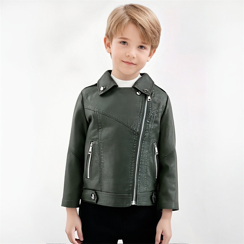 Kid's Boys' Black Leather Jacket Jacket Outerwear Plain Long Sleeve Zip Up Waterproof Windproof Coat Daily Fashion Casual Black Brown Green Spring Fall 4-12 Years