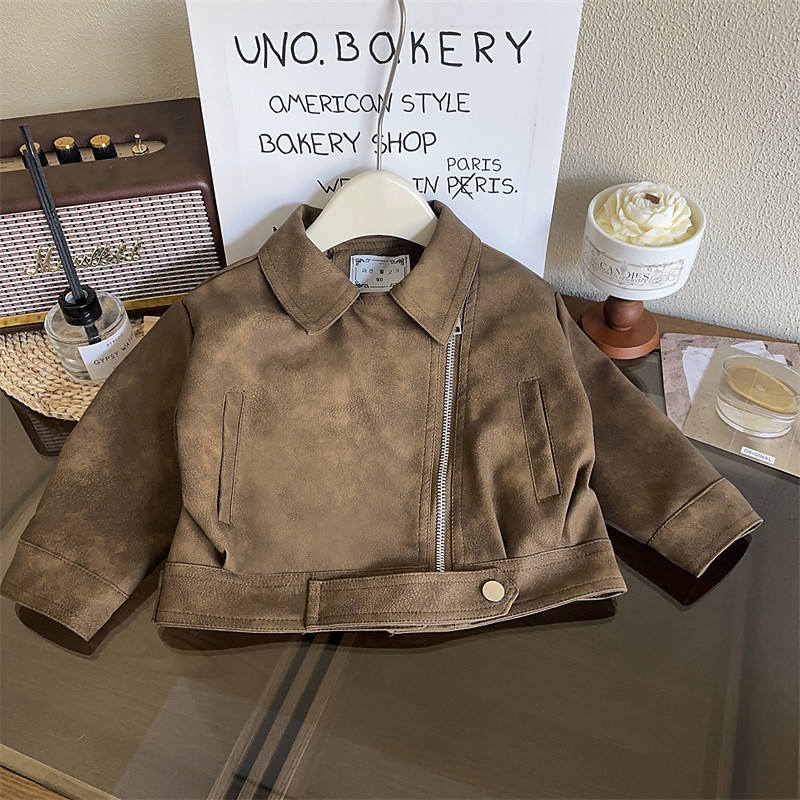 Kids Girls' Black Leather Jacket Jacket Solid Color Fashion Zipper Pocket Windproof Outdoor Coat Outerwear 4-12 Years Fall Brown