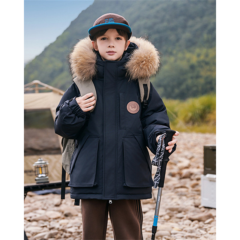 Kids Boys' Down Jacket Hoodie Jacket Puffer Jacket Outerwear Graphic Long Sleeve Keep Warm Windproof Coat Casual Daily Basic Blue White Navy Blue Fall Winter 4 years