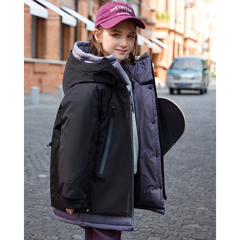 Kids Girls' Down Jacket Puffer Jacket Color Block Sports Pocket Keep Warm Windproof Outdoor Coat Outerwear 4-12 Years Winter Black Gray