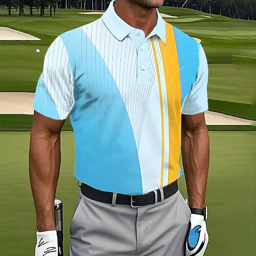 Per uomo Geometrico Golf Polo Sportivi Manica Corta Magliette polo Camicie con Colletto Casual Athleisure Bottoni Estate Primavera Blu Bianco Verde