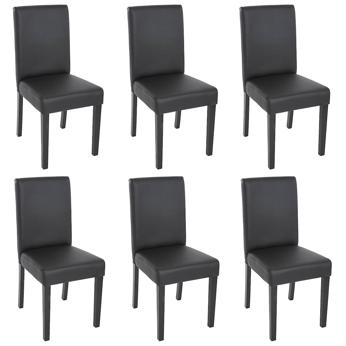 Mendler 6er-Set Esszimmerstuhl Stuhl Küchenstuhl Littau ~ Kunstleder, schwarz matt, dunkle Beine