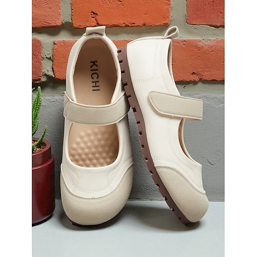 ballerine mary jane beige da donna con vestibilità ampia e cinturino a strappo – scarpe casual comode e antiscivolo a piedi nudi, da indossare tutti i giorni, per camminare e viaggiare