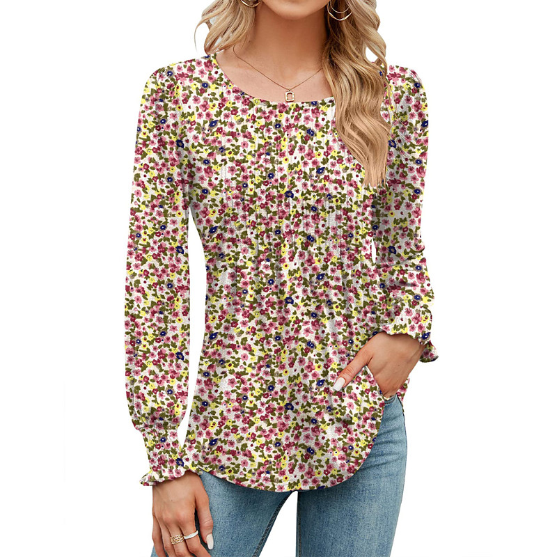 Women's Blouse Flower Modern Casual Long Sleeve Crew Neck Regular Tops Daily Holiday Print Black Yellow Army Green Fall