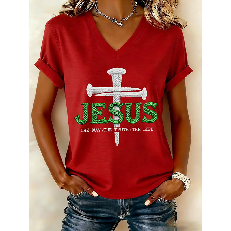 Women's T Shirt Graphic Letter Vintage Stylish Casual Short Sleeve V Neck Regular Tops Daily Print Black White Red Fall Winter