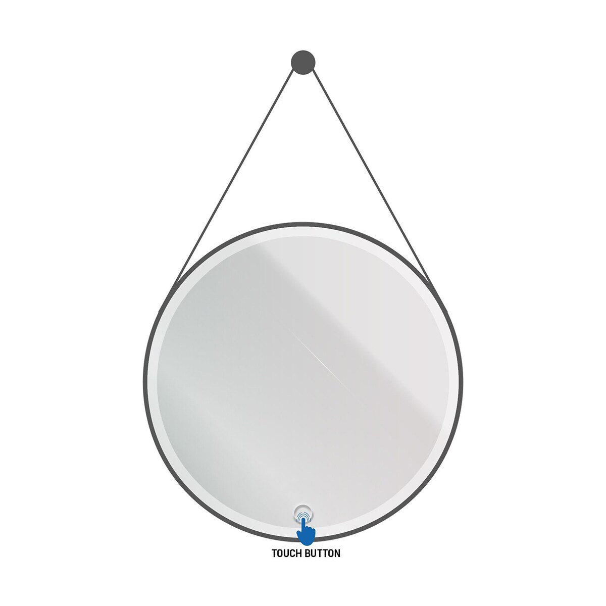 BELVIT Runder LED Spiegel mit Touch Funktion und Gurt 80 cm Mattschwarz Badspiegel mit Beleuchtung
