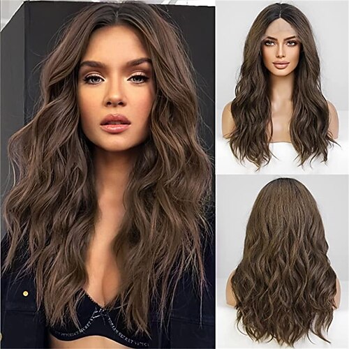 Synthetic Wig Wavy Middle Part Wig Long A24 Synthetic Hair Women's Soft Party Easy to Carry Blonde Pink Black barbiecore Wigs