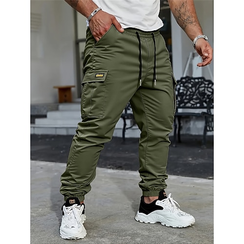 Herren Cargo-Hosen Hose Kordelzug Elastischer Bund Mehrere Taschen Einfach tragbar Outdoor Täglich Campen und Wandern Mode Klassisch Schwarz Armeegrün