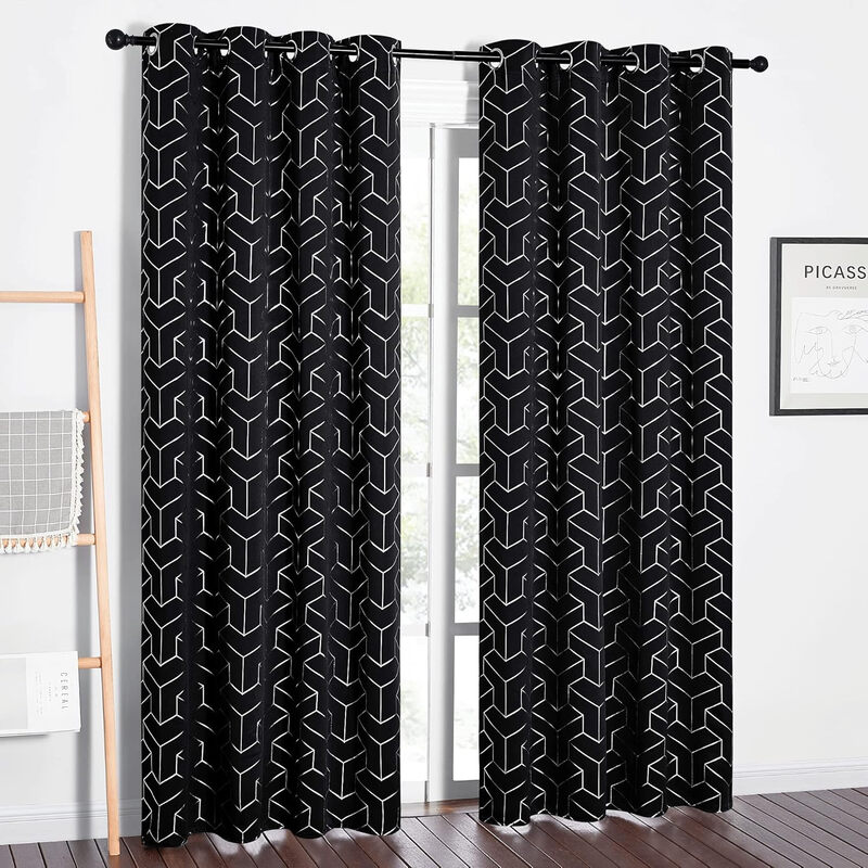 PONY DANCE Foil Printed Blackout Curtains Eyelet, 2 Panels W140 x L245 cm(W55 x L96 inch), Black