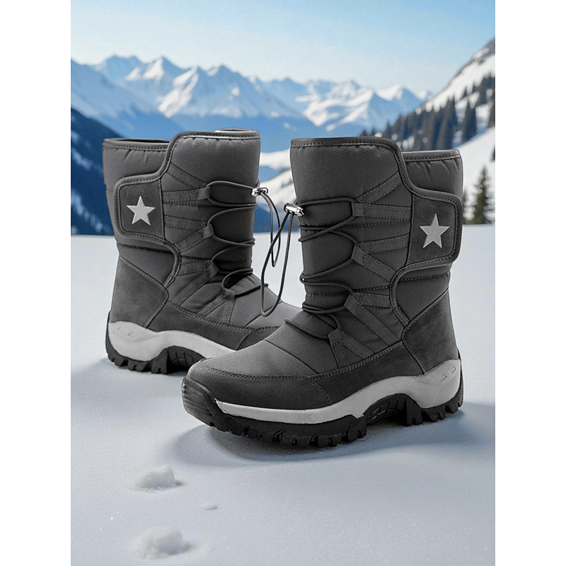 Women's Waterproof Snow Boots with Star Detail Magic Tape – Winter Hiking Boots for Snowy Days, Outdoor Sports and Winter Travel