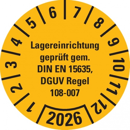 Dreifke® Prüfplakette Lagereinrichtung, DGUV Info.208-061, 2026, gelb, Dokumentenfolie, Ø30mm, 18 Stk.