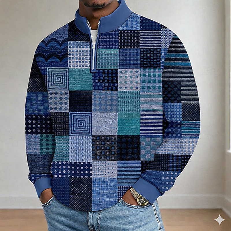 Men's Color Block Geometic Polo Shirts Long Sleeve Standing Collar Casual Vacation Athleisure Casual Daily Patchwork 3D Print Spring Fall Blue 1 Blue 3# Blue 2#