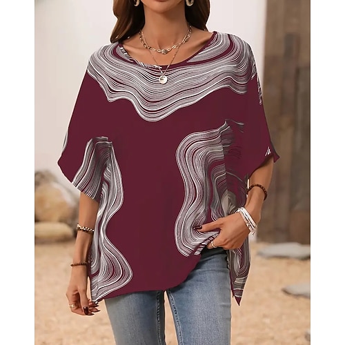 Per donna Maglietta Grafico Geometrico A righe Vintage Elegante Classico Manica Corta Girocollo Top Regolari Quotidiano Stampato Nero Bianco Blu Reale Blu Viola Estate Primavera
