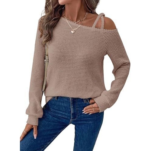 Per donna Maglietta Semplice Classico Casual Manica Lunga Collo asimmetrico Top Regolari Quotidiano Uscire Weekend Patchwork Nero Bianco Cachi Primavera Autunno