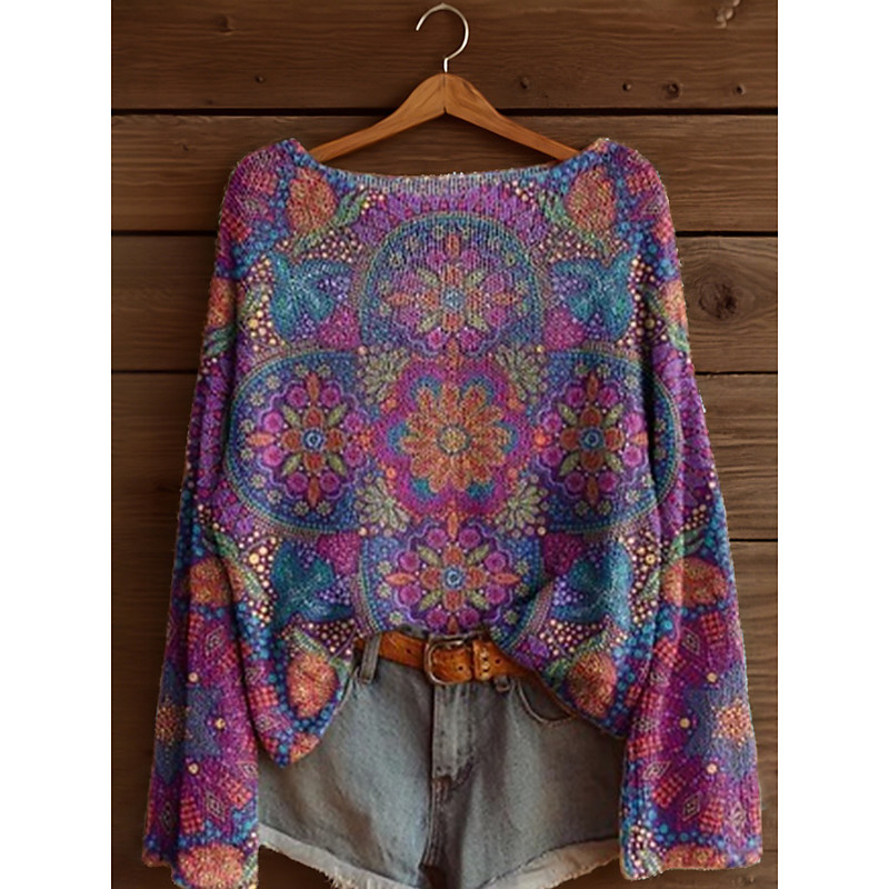 Women's Sweater Casual Soft Floral Graphic Ribbed Boat Neck Floral Knitted Print Long Sleeve Regular Tops Knit Outdoor Daily Weekend Yellow Pink Spring Fall
