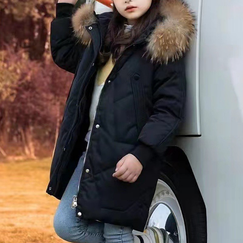 Kids Girls' Down Jacket Puffer Jacket Solid Color Sports Pocket Keep Warm Windproof Outdoor Coat Outerwear 5-12 Years Winter Black Coffee