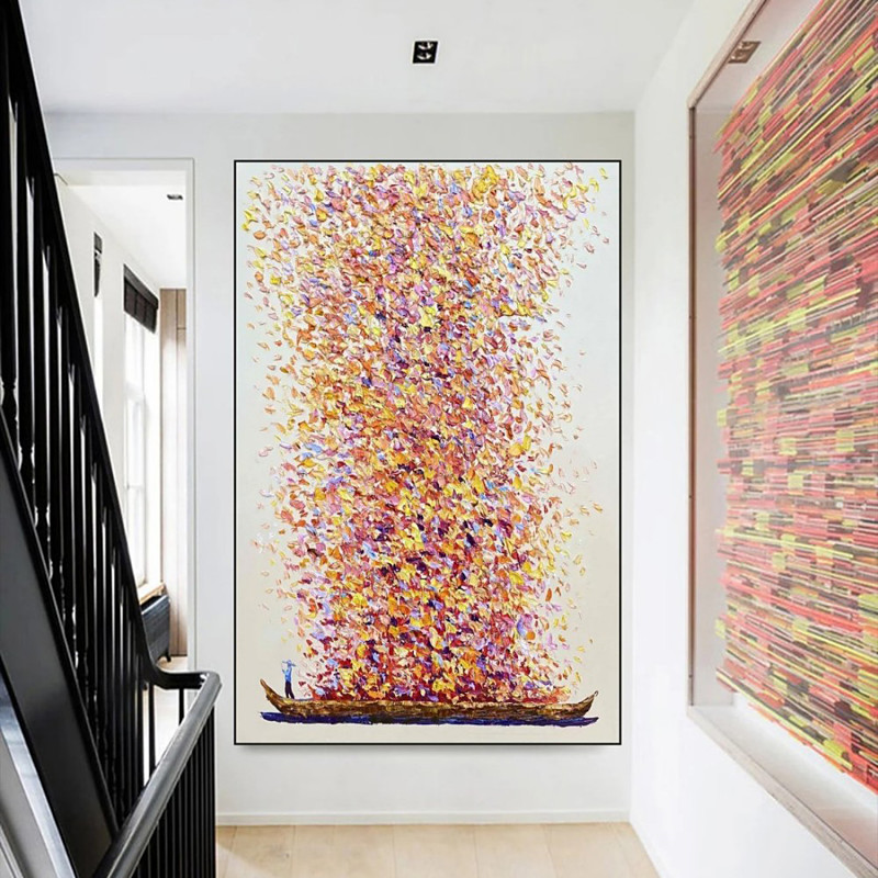 Handmade Oil Painting Canvas Wall Art Decoration Abstract Fishing Boat Landscape Living Room Entrance Hall Decoration Home Decor Rolled Frameless Unstretched Painting