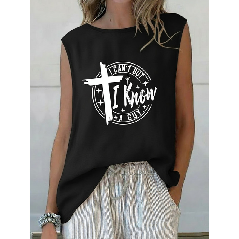 Women's Summer Tops Blouse Sleeveless Shirt Letter Vintage Daily Stylish Sleeveless Crew Neck Regular Tops Daily Holiday Going out Print Blue Black White Pink Summer Spring