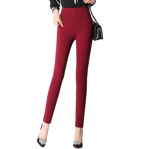 Per donna Normale Pantaloni Leggings Leggings comodi Moda Lunghezza intera Vita Alta Tinta unica Sollevamento glutei Comodità Controllo addominale Elasticizzato Quotidiano Uscire Nero Bianco Vino Blu