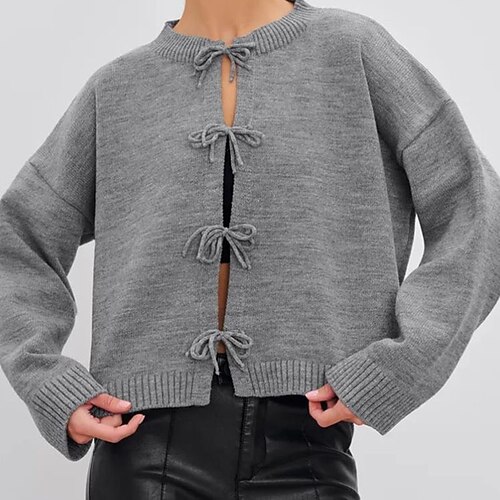 Per donna Felpa Cardigan Elegante Moda Carino Tinta unica Girocollo Lavorato a maglia Stampato Manica Lunga Top Regolari Maglia All'aperto Quotidiano Ferie Nero Bianco Autunno Inverno