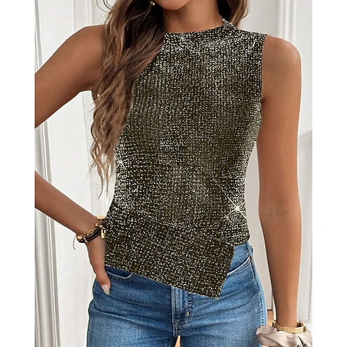 Per donna Maglietta Tinta unica Moda Casual Senza Maniche Girocollo Top Regolari Quotidiano Uscire Weekend Patchwork Argento Vino Oro Estate