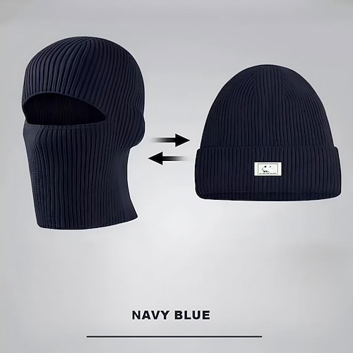 Cappello invernale da uomo, in maglia, con protezione per le orecchie, antivento, in lana, per il freddo, caldo, due in uno, con cappuccio, per sport all'aria aperta, sci e ciclismo