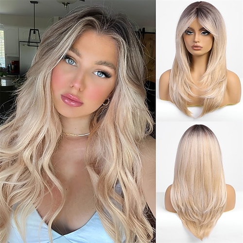 Barbiecore-Filmperücken, blonde Highlight-Perücken für Frauen, 26 Zoll lange lockige synthetische Perücken, Mittelteil, blonde Highlights-Haarperücken, lockere, gewellte Perücken, hitzebeständig