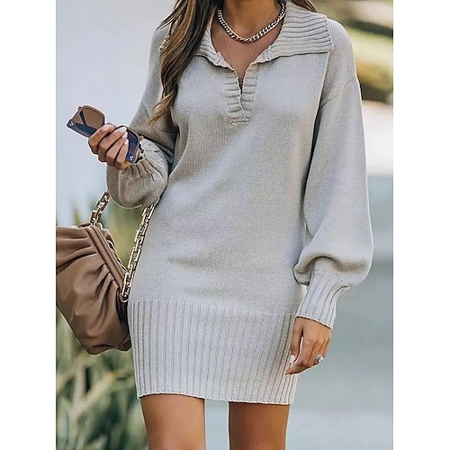 Damen Pullover Pullover Kleid Lässig Weich Einfarbig Gerippt Rundhalsausschnitt Patchwork Gestrickt Druck Langarm Lange Oberteile Stricken Outdoor Täglich Wochenende Schwarz Rote Herbst Winter